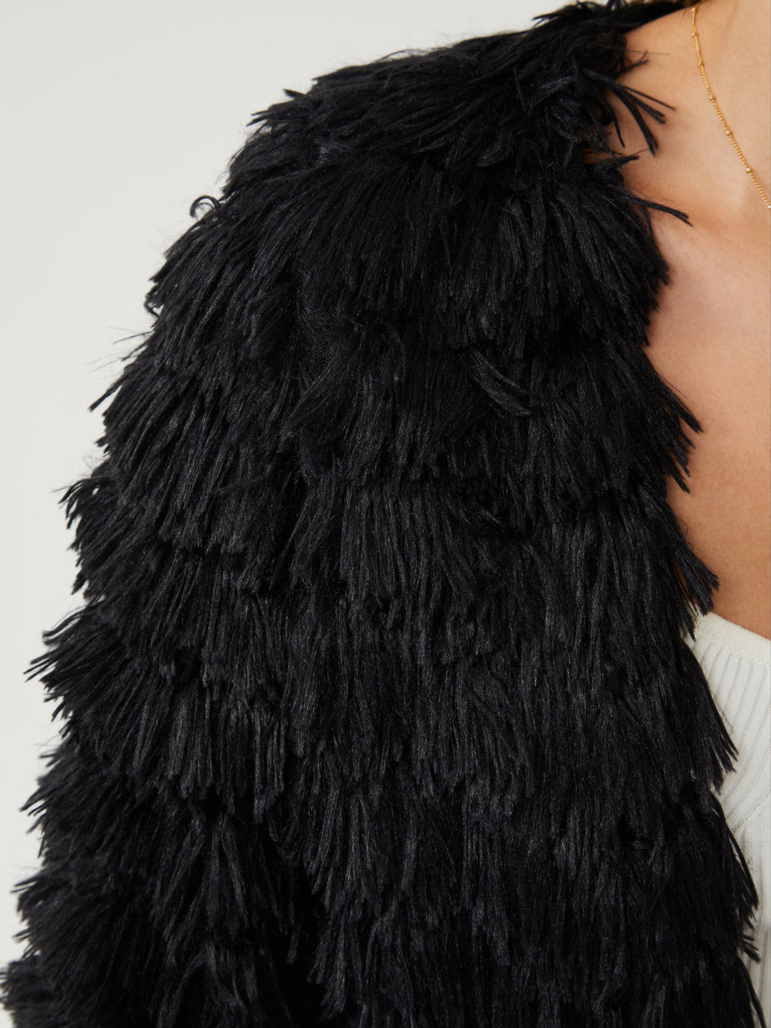 Jacket comes in a graphite black colour. Discovering a fabulous and stylish state of mind in this long sleeve fluffy jacket that does its work in both style and function departments. It features an open front to show off your statement inner top!