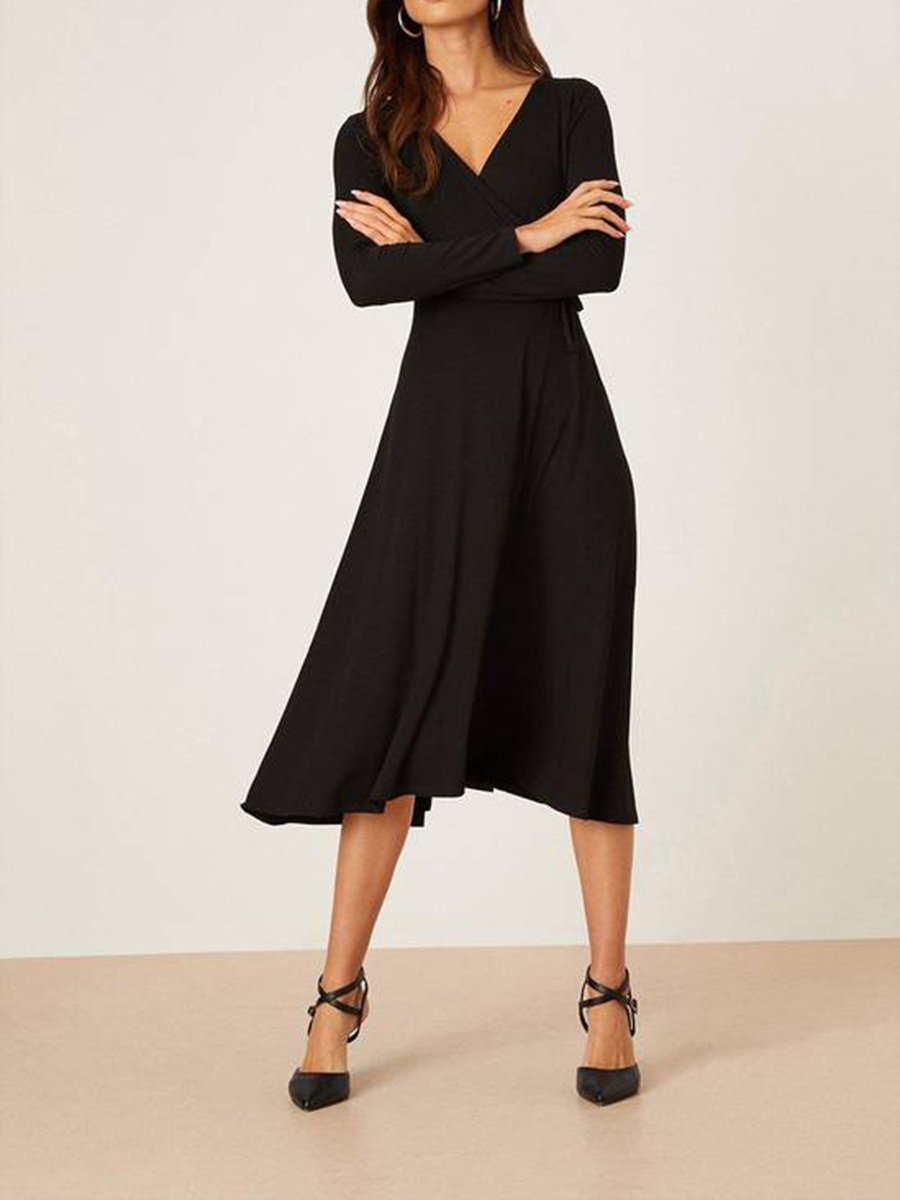 Introducing our elegant black dress with long sleeves and a flattering V-neckline. This timeless piece is perfect for any occasion, whether it's a formal event or a night out with friends. The dress is made from high-quality fabric, ensuring both comfort and durability. Its long sleeves provide added coverage, while the V-neckline adds a touch of sophistication. Pair it with your favorite accessories and heels to complete the look. Upgrade your wardrobe with this versatile and stylish black dress.