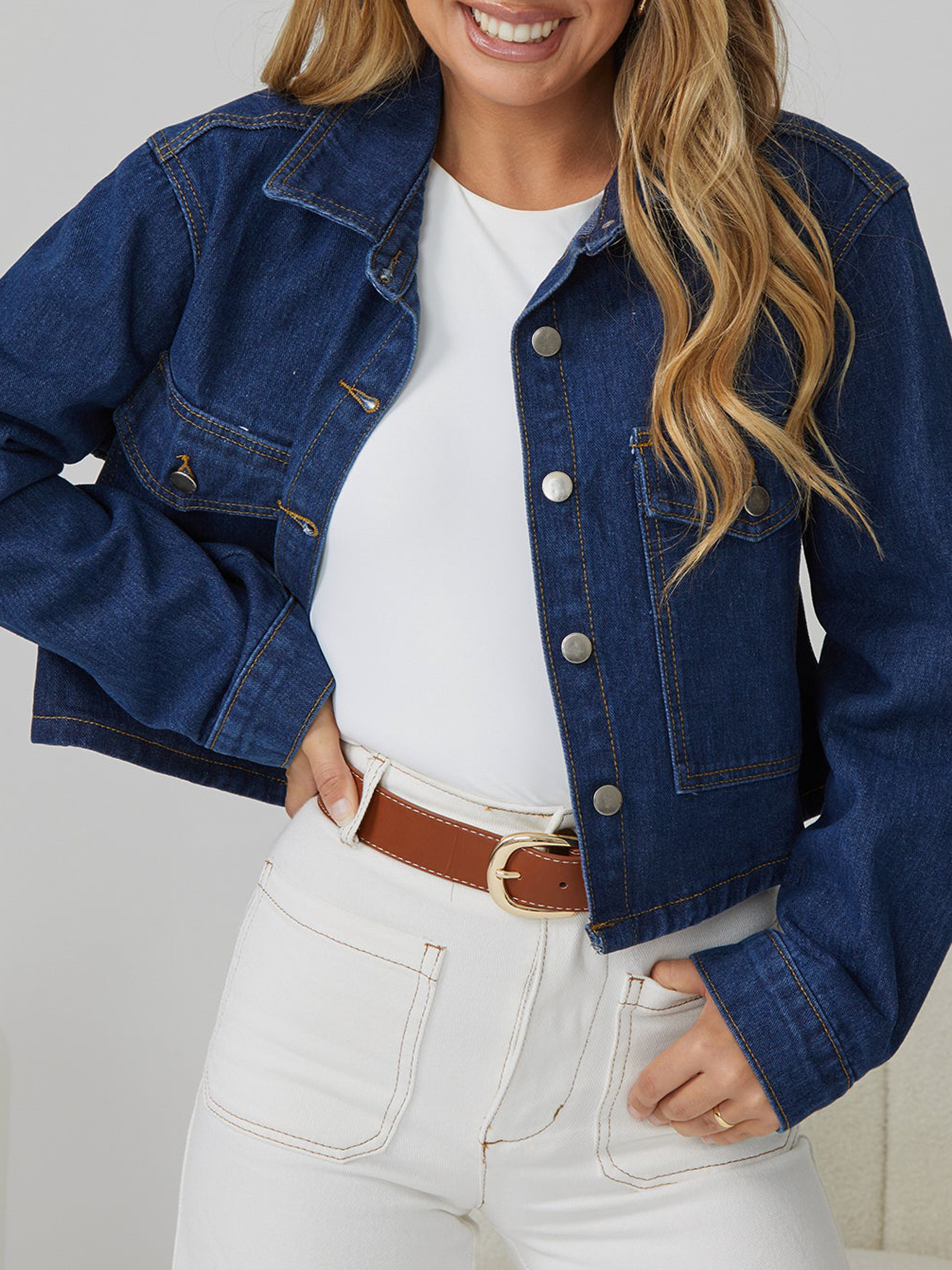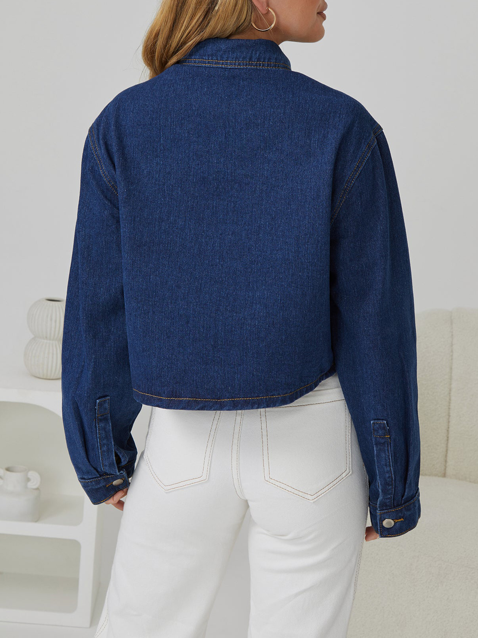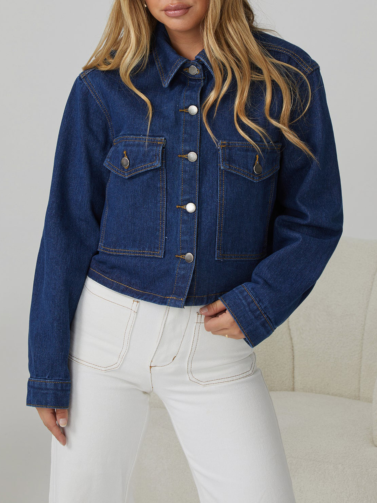 Jacket comes in an indigo colour. Be an urban explorer with this piece that features a shirt collar, front buttons, long sleeves and pockets. Walk the streets with confidence and pair with a cami and jeans!